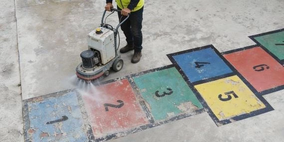 Playground markings are removed using specialist equipment such as thermal softening, mechanical planing, or surface-safe abrasion techniques.